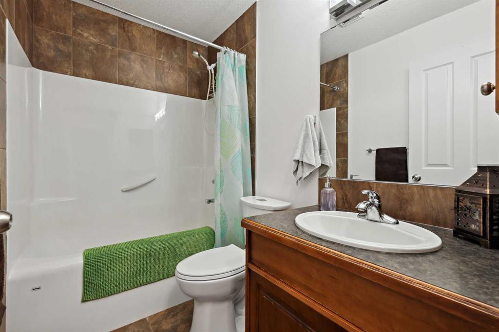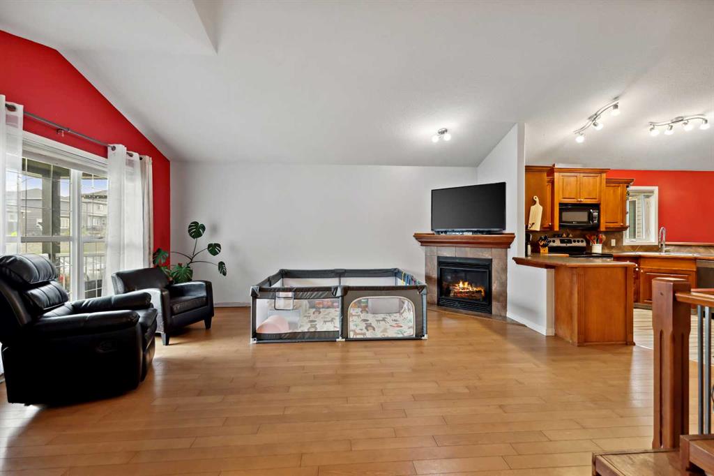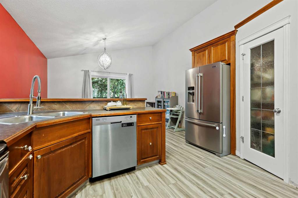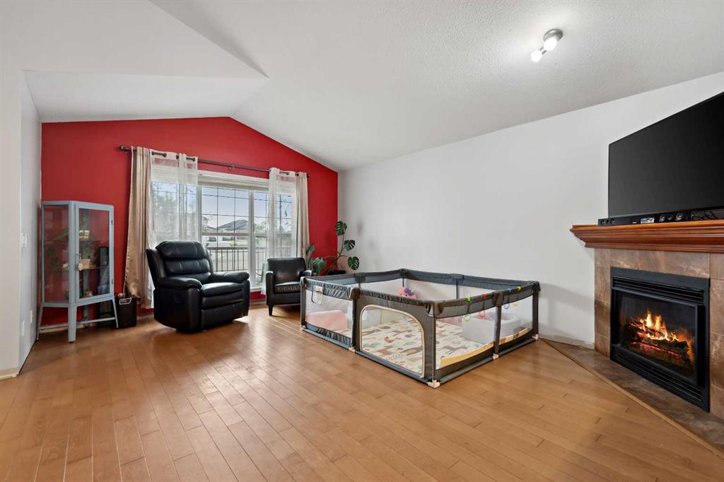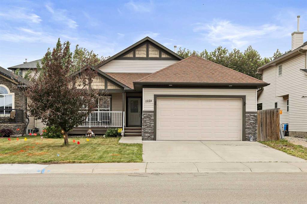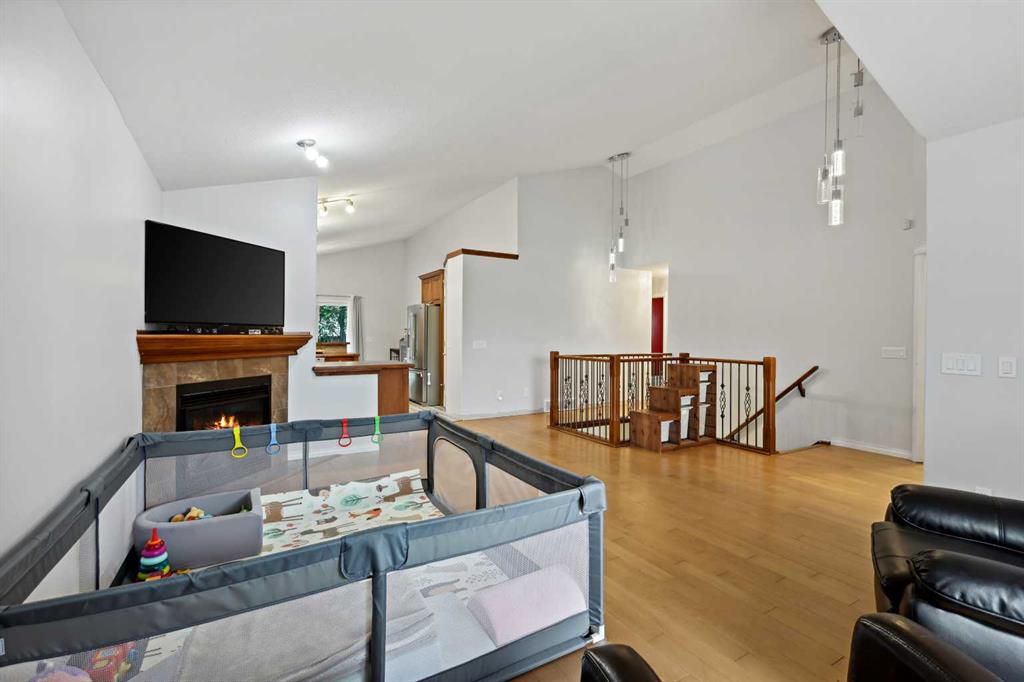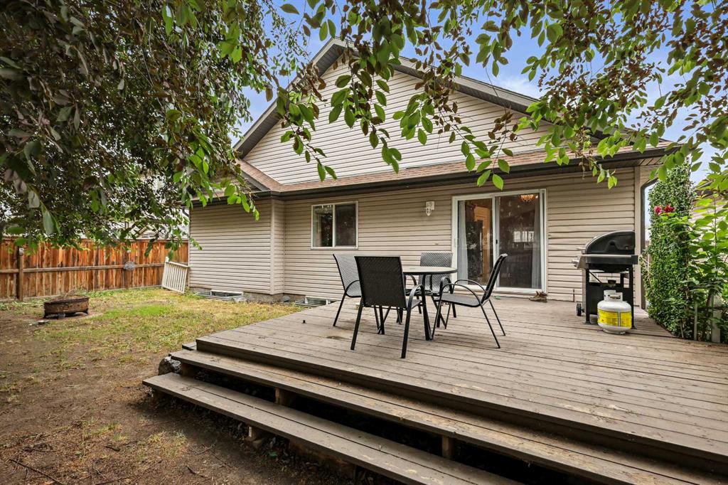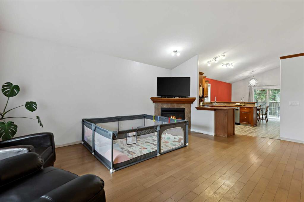 Welcome home to the desirable community of Strathmore Lakes Estates. This fantastic bungalow is waiting for your personal touch. The main level features a generous living room a vaulted ceiling, gas fireplace and hardwood flooring. The kitchen has plenty of storage including a pantry, a sit up breakfast bar, and great dining area leading to the backyard. The primary bedroom offers a luxurious 4-piece ensuite and walk-in closet. There are 2 additional bedrooms and a 4-piece bathroom. A mudroom right off the garage and a large laundry room complete the main level. The basement adds extra living space with a large recreation room with a gas fireplace, 2 bedrooms, roughed-in bathroom, and plenty of storage. Mature trees in the backyard offer privacy while you enjoy relaxing on the deck. Nestled in a new and vibrant community with easy city access, parks & playgrounds, and fantastic amenities, this home is a true gem for a growing family seeking a magical place to call home.