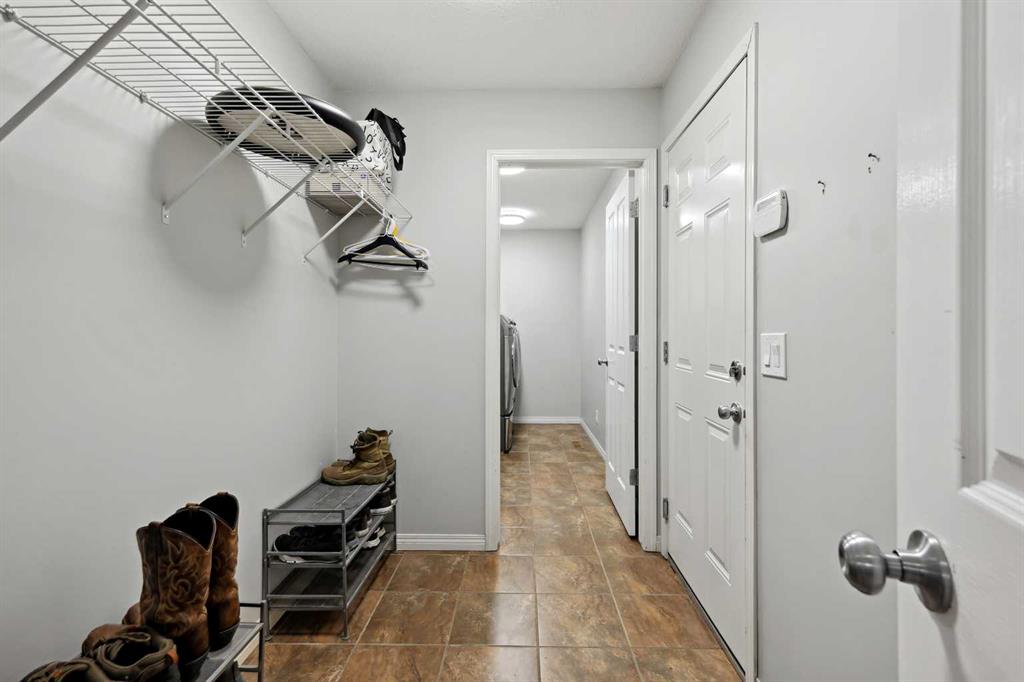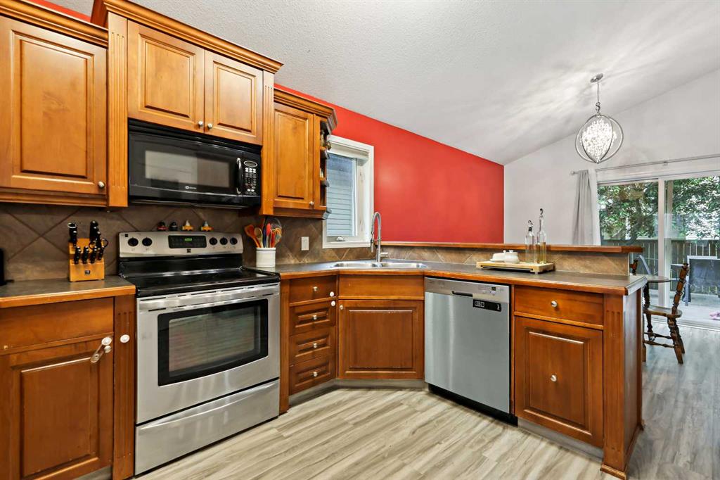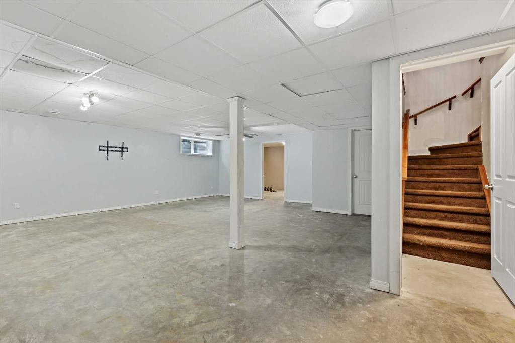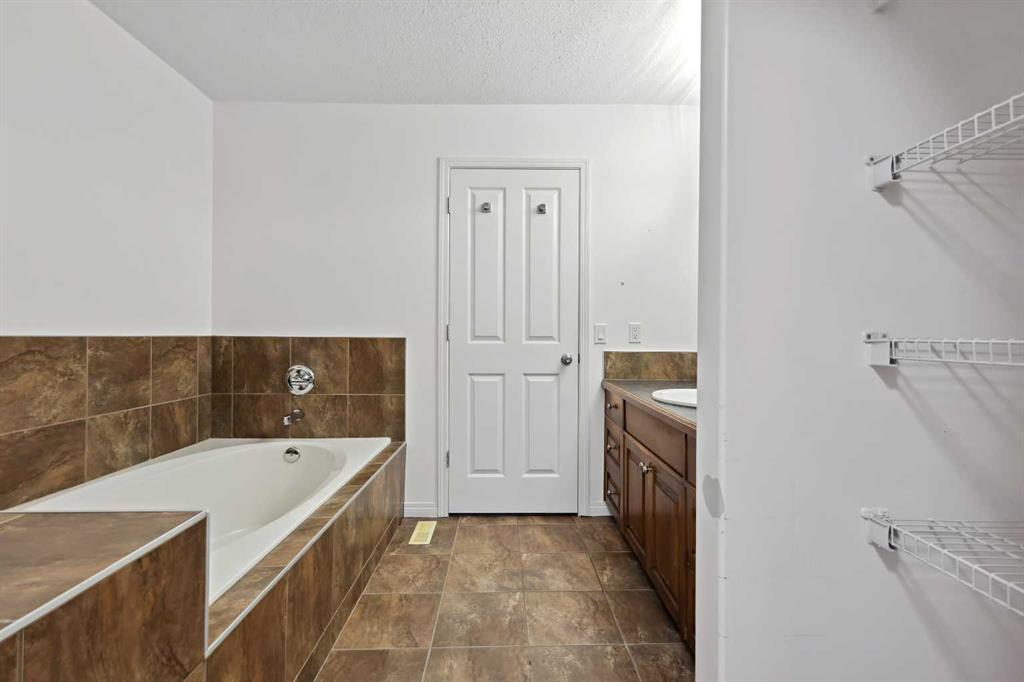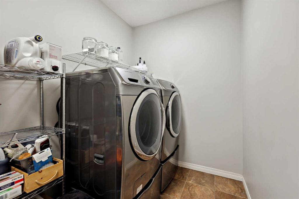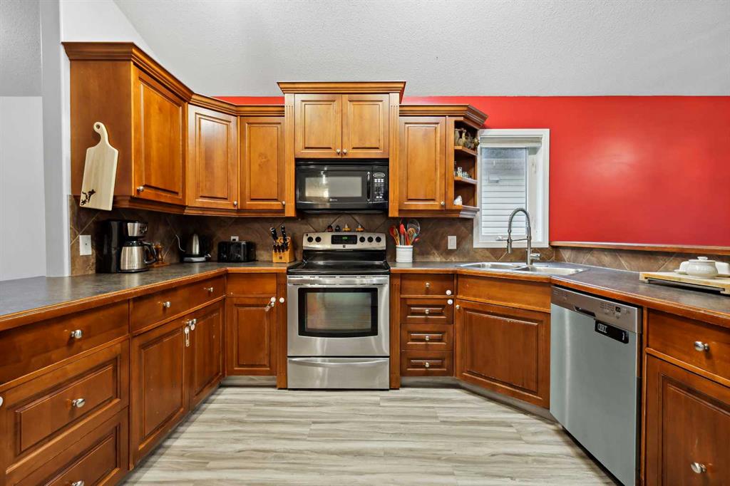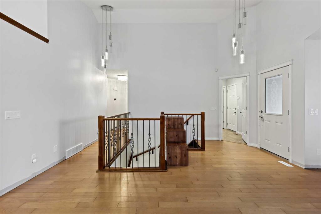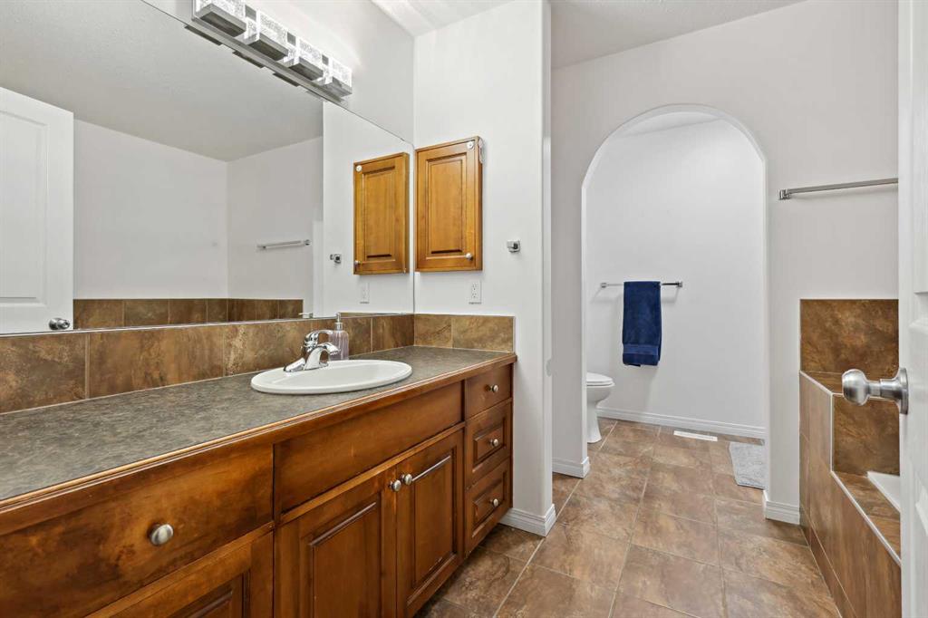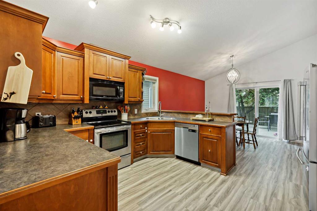 Welcome home to the desirable community of Strathmore Lakes Estates. This fantastic bungalow is waiting for your personal touch. The main level features a generous living room a vaulted ceiling, gas fireplace and hardwood flooring. The kitchen has plenty of storage including a pantry, a sit up breakfast bar, and great dining area leading to the backyard. The primary bedroom offers a luxurious 4-piece ensuite and walk-in closet. There are 2 additional bedrooms and a 4-piece bathroom. A mudroom right off the garage and a large laundry room complete the main level. The basement adds extra living space with a large recreation room with a gas fireplace, 2 bedrooms, roughed-in bathroom, and plenty of storage. Mature trees in the backyard offer privacy while you enjoy relaxing on the deck. Nestled in a new and vibrant community with easy city access, parks & playgrounds, and fantastic amenities, this home is a true gem for a growing family seeking a magical place to call home.