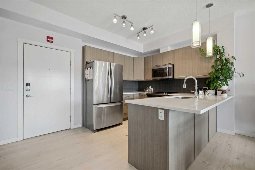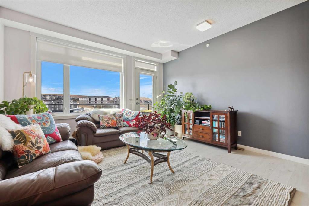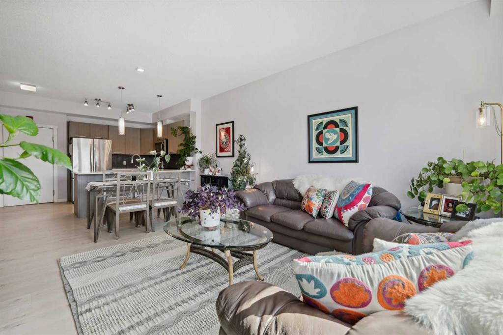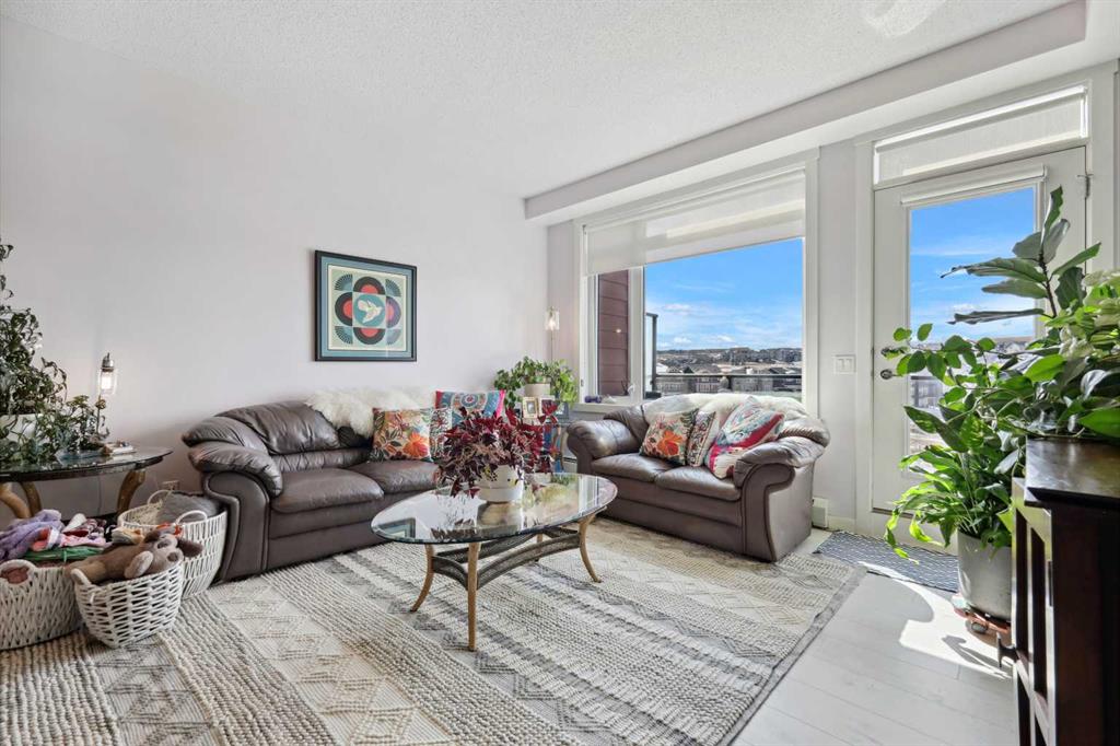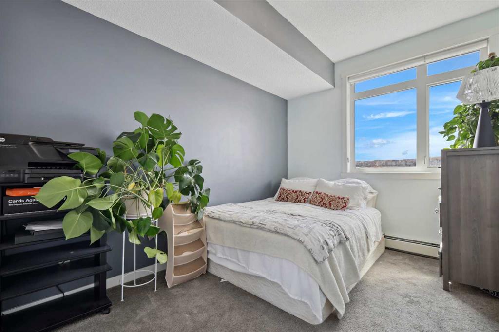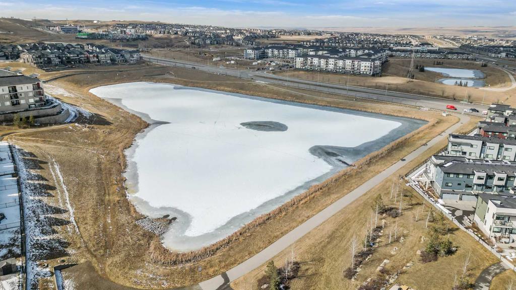 Experience top floor elegance in Unit #412 at 214 Sherwood Square NW. This stunning 2-bedroom, 2-bathroom condo boasts a southwest facing balcony with serene views of Sherwood Square Lake. The modern kitchen dazzles with quartz counters, stainless steel appliances, and a chic sit-up breakfast bar. With generous cabinet and counter space, the kitchen is a dream for cooking and entertaining. Gorgeous luxury vinyl plank flooring flows throughout the main living spaces. With 9-foot ceilings and ample natural light the open concept feels bright and airy. Retreat to the primary bedroom with a walk-through closet leading to the 3-pieace ensuite, featuring a walk-in shower. A second bedroom and 4-piece bathroom provide comfort and convenience. Additional perks include in-suite laundry, generous storage, a titled parking stall in the heated underground parkade, and secure bike storage. Situated near Sage Hill Plaza & Beacon Hill, pathways, LRT and major roadways, this condo offers the perfect blend of style and functionality. Contact your Realtor today to book a showing!